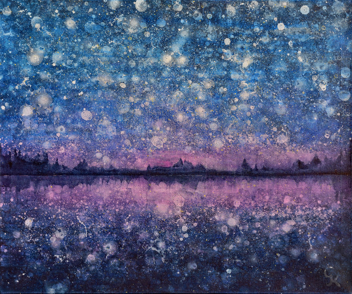 Das Bild macht bewusst, dass wir nicht isoliert im Hier und Jetzt leben, sondern umgeben sind von einer geistigen Welt, geistigen Wesen, kosmischen Kräften, die uns begleiten und unseren Weg erhellen. Wir sind umgeben von himmlischen Kräften, die sich in unserer Welt spiegeln wie auf einer glatten Wasser- oder Eisfläche. Wo wir die Erde als Spiegelbild des Himmels verstehen, wird aus dem alltäglich Gesehenen eine Welt voller Überraschungen, voller Atmosphäre und der Begegnung mit Gott wie im Psalm 19,2-5 : „Die Himmel erzählen die Herrlichkeit Gottes und das Firmament kündet das Werk seiner Hände. Ein Tag sagt es dem andern, eine Nacht tut es der andern kund, ohne Rede und ohne Worte, ungehört bleibt ihre Stimme. Doch ihre Botschaft geht in die ganze Welt hinaus, ihre Kunde bis zu den Enden der Erde.“ So berühren sich in dem Bild Vergänglichkeit und Ewigkeit ebenso wie Licht und Dunkelheit, Oberflächlichkeit und Tiefe, menschliche Größe und göttliche Herrlichkeit.
