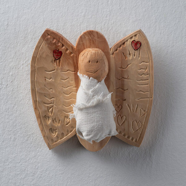 Schmetterlingsleicht, unbeschwert und fröhlich lässt ein achtjähriges Kind die Weihnachtsbotschaft durch den Advent zum Heiligen Abend schweben. In mittelalterlichen Verkündigungsdarstellungen brachte der Heilige Geist den Gottessohn in Gestalt einer Taube zu Maria. Hier wird der Hoffnungsträger als Mitfliegender gezeigt, der den Schmetterlingskörper selbst bildet. Die Taube als göttliche Botin ist dem leichten Schmetterling gewichen, der den Friedensboten par excellence in unsere Mitte trägt: federleicht, tanzend, frei, aber auch zerbrechlich, gefährdet, schutzbedürftig. Zudem wird mit dem Schmetterling das Thema der Verwandlung angesprochen. Nicht vom Gottessohn zu Jesus. Er behält beide Naturen, bleibt Gott und wird zugleich vollumfänglich Mensch. Das ist das erste Wunder der göttlichen Liebe.