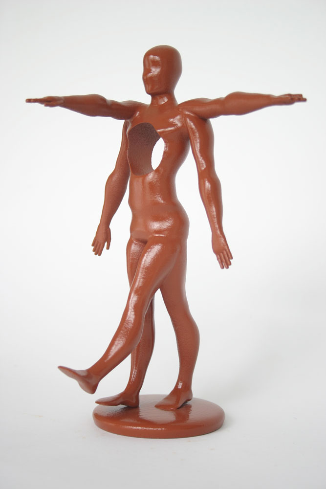 Was für eine Menschenfigur! Sie hat drei Beine und vier Arme, und mitten in der Brust gähnt ein riesiges Loch. Dort, wo sonst des Menschen Herz schlägt, ist einfach nichts. Man blickt durch ihn hindurch. Dieser Mann ist herzlos, er hat kein Herz mehr. Er hat sein Herz verloren oder es ist ihm genommen worden. Jedenfalls ist er sein Herz los, er hat seine Mitte verloren, auch wenn er scheinbar quicklebendig ist.